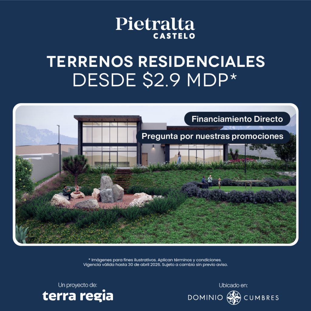 Pietralta Castelo está ubicado en DominioCumbres, el lugar de mayor crecimiento y plusvalía en Monterrey.